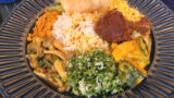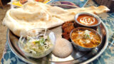 ワンプレートにご飯とルー、副菜がバランスよく盛り付けられた構成で、第一印象はスパイシーな香りが立ちます。
